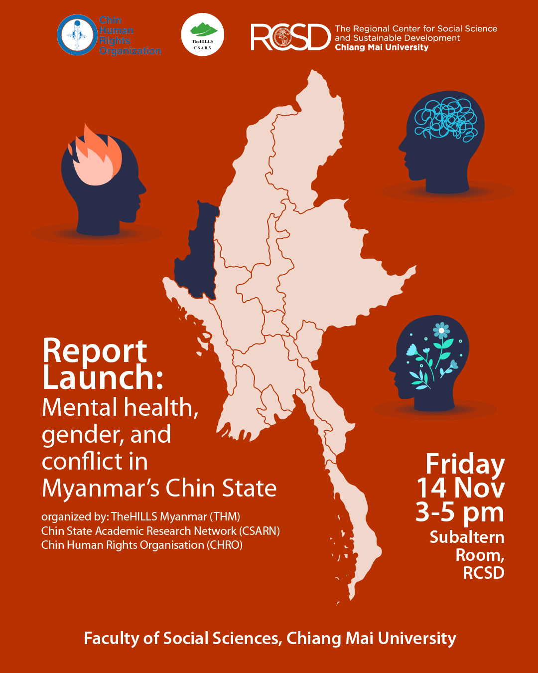 This report launch event presents the first study to examine how conflict, gender, and cultural expectations intersect to shape mental health in Myanmar’s Chin State. Conducted during an active civil war through trauma-informed and participatory methods, the research draws on focus group discussions, key informant interviews, and body-mapping exercises across four townships. The findings reveal widespread distress, gendered silences, and faith-based understandings of suffering that both sustain and constrain healing. They also show how women, LGBTQIA+ people, displaced families, and persons with disabilities experience layered forms of exclusion amid political violence and poverty. The Chin State Academic Research Network (CSARN), an initiative of TheHILLS Myanmar, embodies a model of community-rooted research built on trust, local languages, and mentorship. Working through embedded local-global networks and partnerships, CSARN connects emerging Chin researchers with experienced mentors and institutions, acting as an interdisciplinary platform that supports and connects researchers engaged in the region, and promotes the exchange of high-quality, context-relevant knowledge. This study offers not only an urgent call for localized mental health interventions, but also a reflection on what it means to build knowledge, solidarity, and care from within conflict-affected communities.